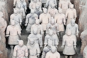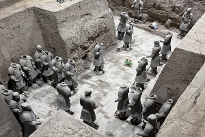 진시황릉에서 1km가량 떨어져있는 유적지로 흙을 구워 만든 수많은 병사,말등의 모형이 있는 갱도입니다. 1974년 농민이 우물을 파다가 우연히 발견되어 지금까지 4개의 갱도가 발견되었습니다. 전사,전차,말,장교,곡예사,역사,악사등 다양한 사람과 사물을 표현하고 있으며 발굴된 4개의 갱도 중 3곳에 모두 8천여 점의 병사와 130개의 전차, 520점의 말이 있을것으로 추정되며 아직 상당수가 흙 속에 묻혀 있습니다.