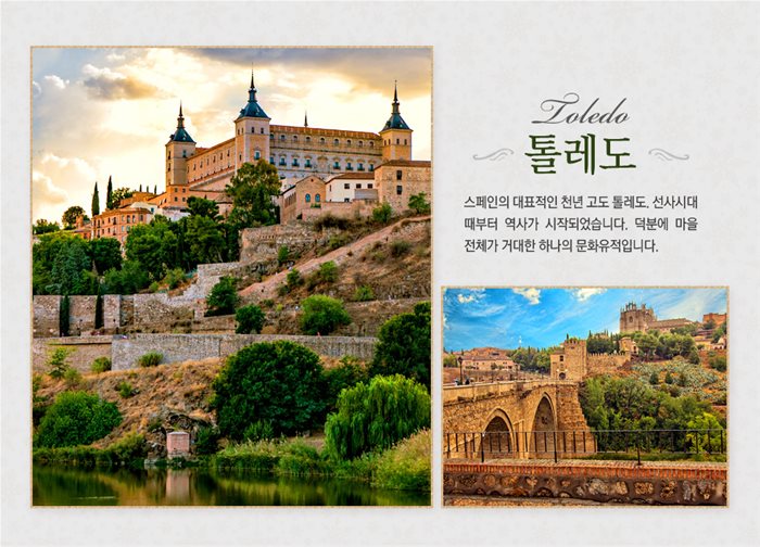 | 6 | 똘레도 미니열차 탑승 | 똘레도 시내에서 타호강을 지나 전망대까지 운행하며, 전망대에서 중세도시 똘레도 전경을 한눈에 볼 수 있습니다. (소요시간 약 30분 소요, 현지 사정에 따라 소요시간이 달라질 수 있습니다.) | €30 | 30분 | 시내 자유시간 | 시내 | 미동행 |