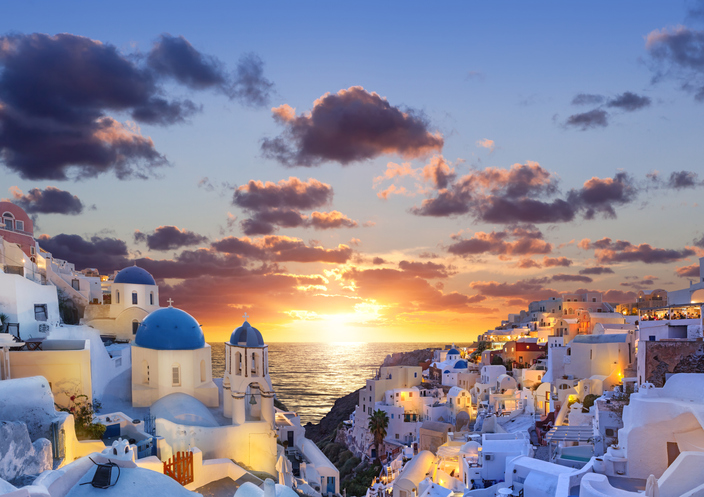 기원전 천년 전 꿈에 도시이자 전설의 대륙인 아틀란티스로 추정되는 많은 요소들이 발견되면서 더욱 더 유명세를 타고 있는데, 화산활동으로 형성된 붉은단층 절벽위의 아름다운 백색마을이 환상을 심어줍니다. 가장 선호하는 휴양지로 항상 오르내리는 산토리니는 그리스를 여행하는 관광객이라면 반드시 꼭 방문해보아야 할 필수 관광지입니다.