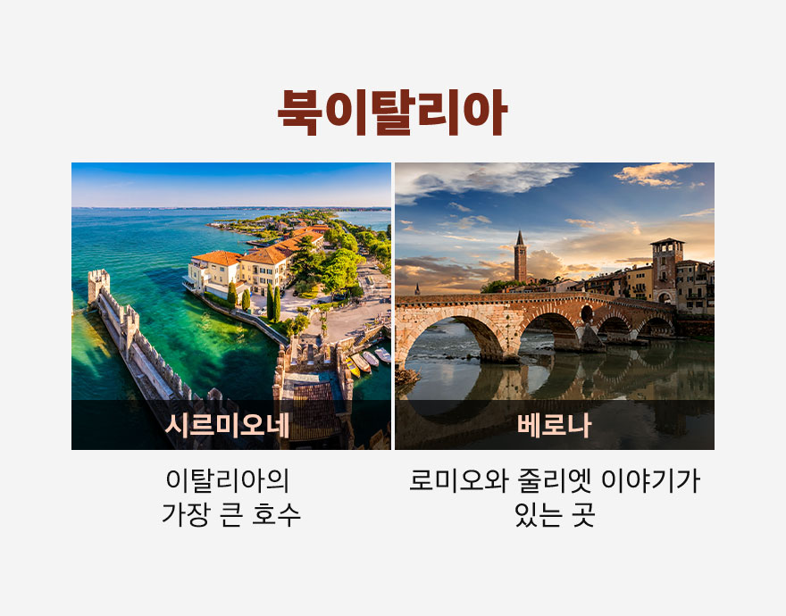 | 3 | 시르미오네 보트 | 이탈리아에서 가장 넓은 호수인 가르다 호수를 감상하실 수 있습니다. | 30유로 | 약 30분 | 주변에서 자유 시간 진행 | 호수 주변 | 미동행 |