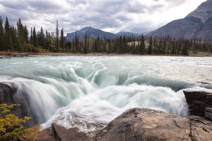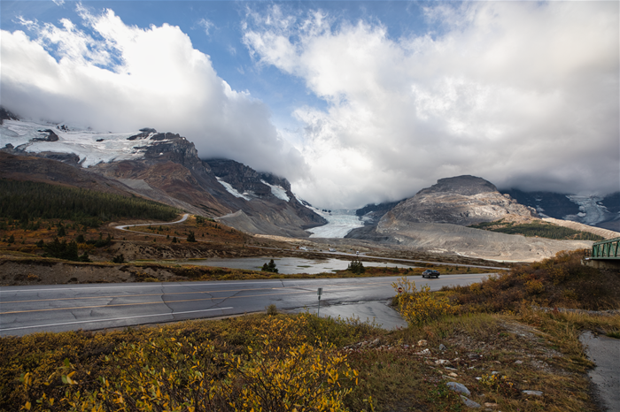 발레 마운틴에서 아싸바스카 폭포에 들러 콜롬비아 대빙하로 가는 양측으로 에메랄드 빛 빙하수가 굽이굽이 흐르고 스위스 알프스 보다 더 웅장하고 거친 공룡의 등줄기를 닮은 로키의 진정한 비경이 펼쳐지기 시작합니다.