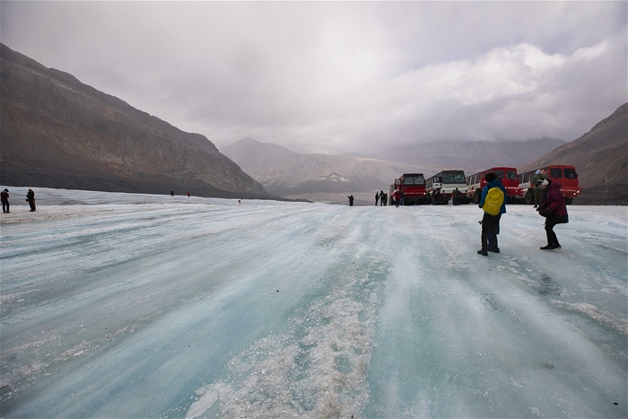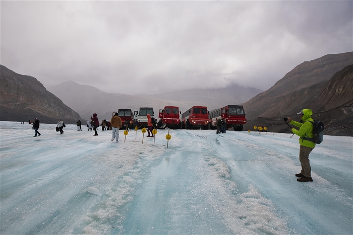 장갑차 같은 설상차를 타고 콜롬비아 빙하에 올라 빙하 위를 걸어보는 빙하체험은 날씨 탓에 바람이 거세게 불고 춥고 힘들어서 사진 몇 장 건진 것에 만족해야 했습니다.