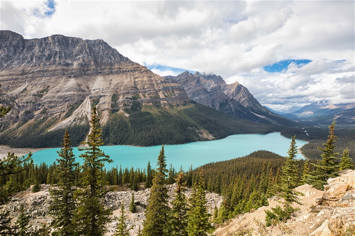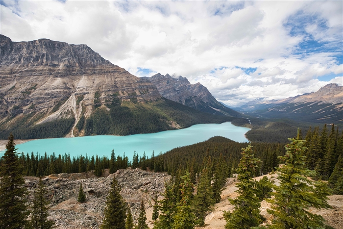 9월 중순에 여행 스케줄을 잡은 이유는 로키의 유명한 호수를 모두 보기 위함인데 첫 번째 나도 모르게 감탄사를 연발하게 된 호수가 바로 페이토 호수인데 정말이지 인세에 보기 힘들 정도로 아름답고 신비로운 한 폭의 그림 같은 풍경이었습니다.