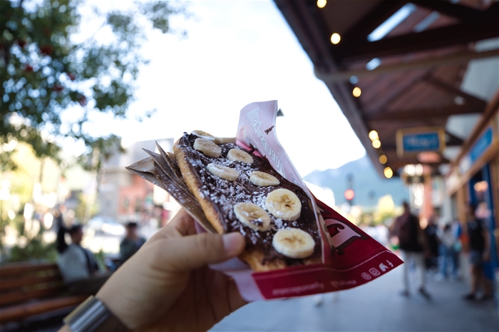 저녁에 밴프 타운에 머물며 지인에게 줄 선물도 고르고 유명한 비버테일도 맛보고 상점에도 들러 구경하였습니다.