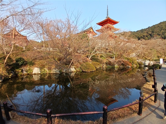 청수사의 빨간 입구를 지나니 지팡이를 뽑으려고 줄을 서 있는 사람들이 보였습니다. 경건하게 불전에 참배하는 사람들이 많더라고요. 가이드 말씀대로 관광객도 많지만 신사나 절에는 생활로 참배하는 사람들이 많다는 데 고개가 끄덕여지더라고요. 우리나라로 치면 지장전을 지나면서 본당(?)을 배경으로 사진을 찍는 사람들이 많았습니다. 이리 저리 가족들과 셀카를 찍었더니 지나가던 외국인이 친절하게도 찍어주시더라고요.