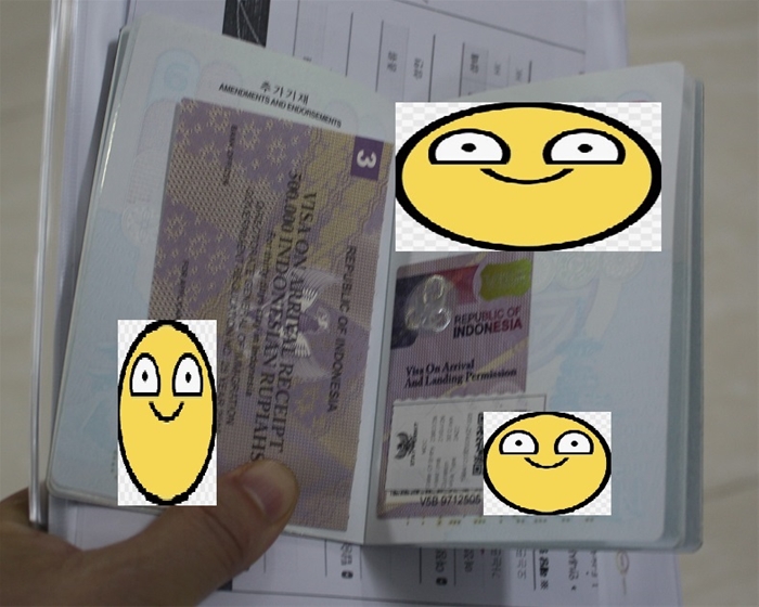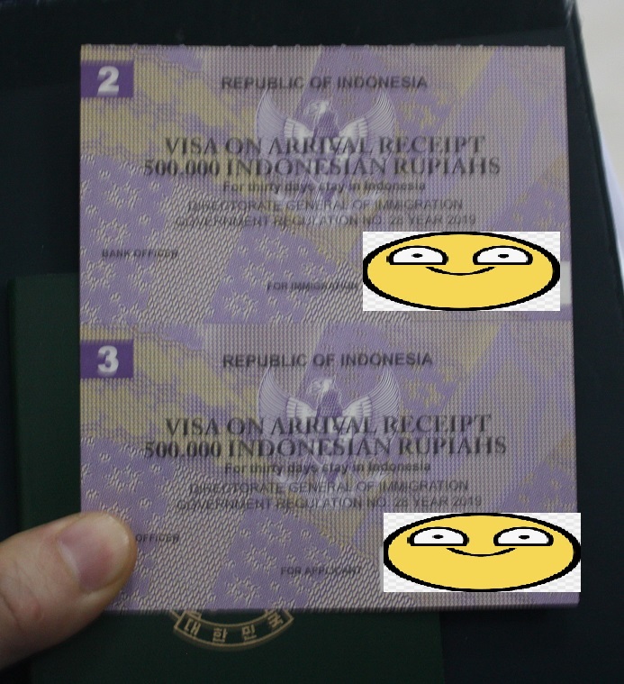 여권 주고 기다리다 50만 IDR 주면, 여권과 ②, ③을 줘요(3분 정도 경과).