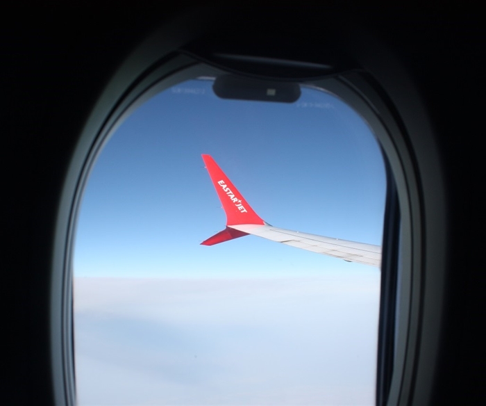 이스타항공(ZE535)를 타고 날아가요. 기내는 3-3 배열이네요.