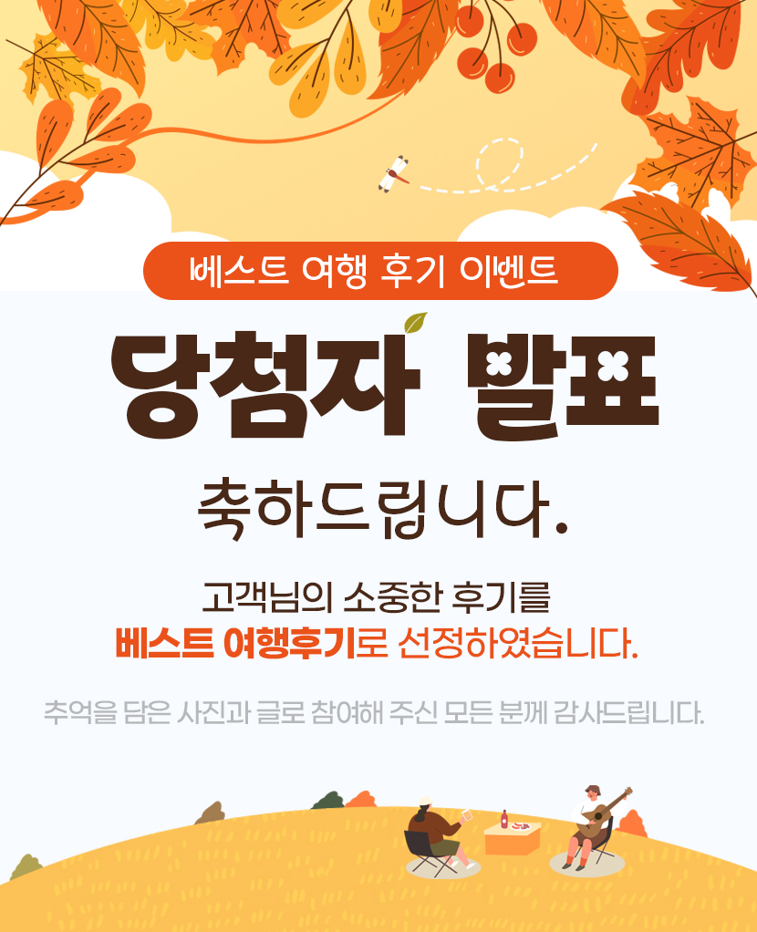 행복한 여행의 기억을 기록으로 남겨주신 모든 고객님들께 깊이 감사드립니다.