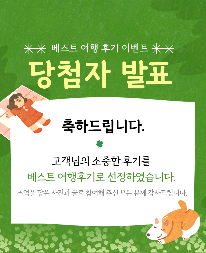 행복한 여행의 기억을 기록으로 남겨주신 모든 고객님들께 깊이 감사드립니다.