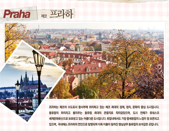 유럽의 수많은 도시 중에서 한국인에게 가장 인기있는 도시를 꼽으라면 단연 프라하가 1위를 차지합니다. 사람들이 프라하를 좋아하는 이유는 단순합니다. 다른 유럽 도시에 비해 파격적으로 물가가 저렴하고, 음식이 맛있다는 점 그리고 프라하 성과 카렐교로 대표되는 로맨틱한 풍경 때문입니다. 체코의 수도, 동유럽의 파리, 도시 전체가 유네스코 세계유산이라는 설명은 오히려 구차합니다. 유럽에서 중세 유럽의 느낌이 가장 잘 보존된 도시, 보석같은 곳이 프라하입니다. 유럽에서 단 하나의 도시에만 머무르라고 한다면 단연 프라하입니다.