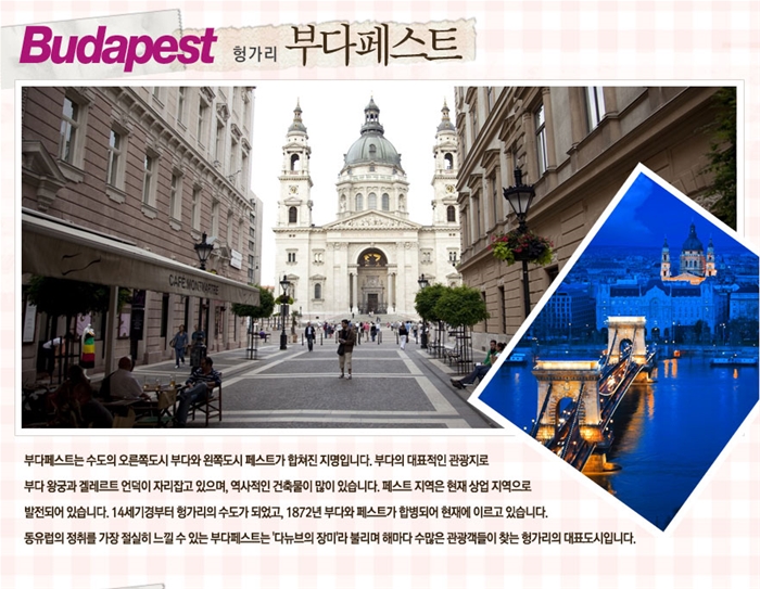 | 3 | 부다페스트 야간크루즈 | 유람선을 타고 다뉴브 강을 따라 야경 감상 | 40유로 | 약 40분 | 휴식 | 호텔 | 미동행 |