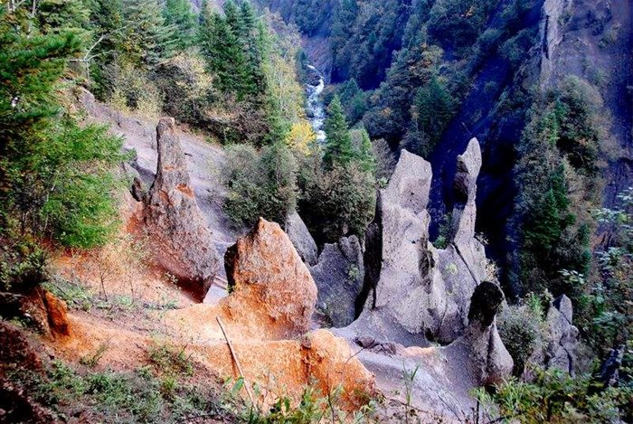 백두산이 화산 폭발을 일으킬 때 용암이 흐르던 자리가 오랜 세월 풍화에 씻겨 이루어진 것으로 협곡 주위로는 원시림이 장관을 이루고 있으며, 협곡 바닥에는 맑은 물이 흘러 갑니다. 이 물은 급하게 흐르는데 이 물을 급강(急江)이라하고 그 아래에는 만강(漫江)이라는 하천과 마을이 있어서 대조를 이룹니다. 북금강(北錦江)이 계곡을 흐르고 있습니다.