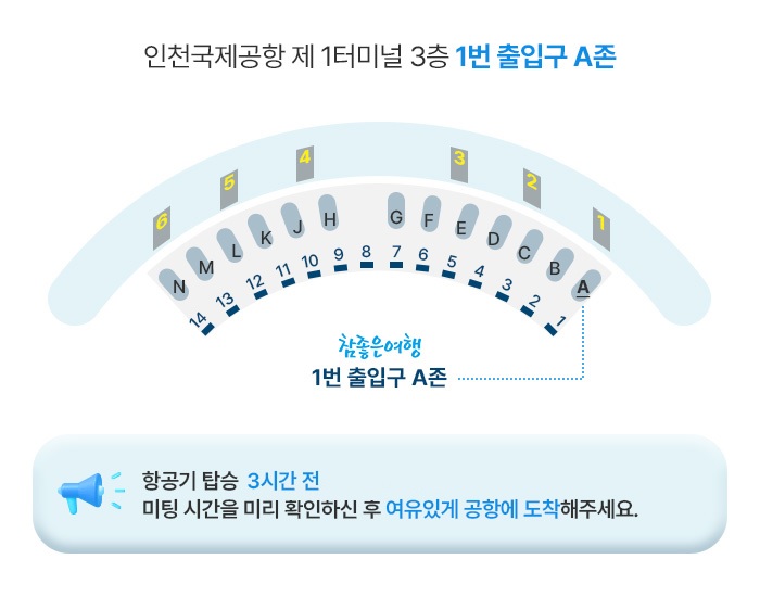 인천국제공항 제1터미널 3층 1번 출입구 A카운터