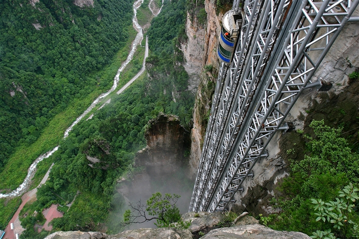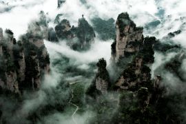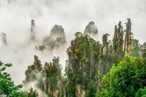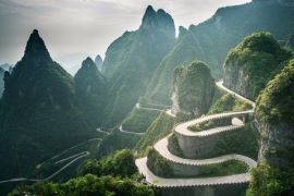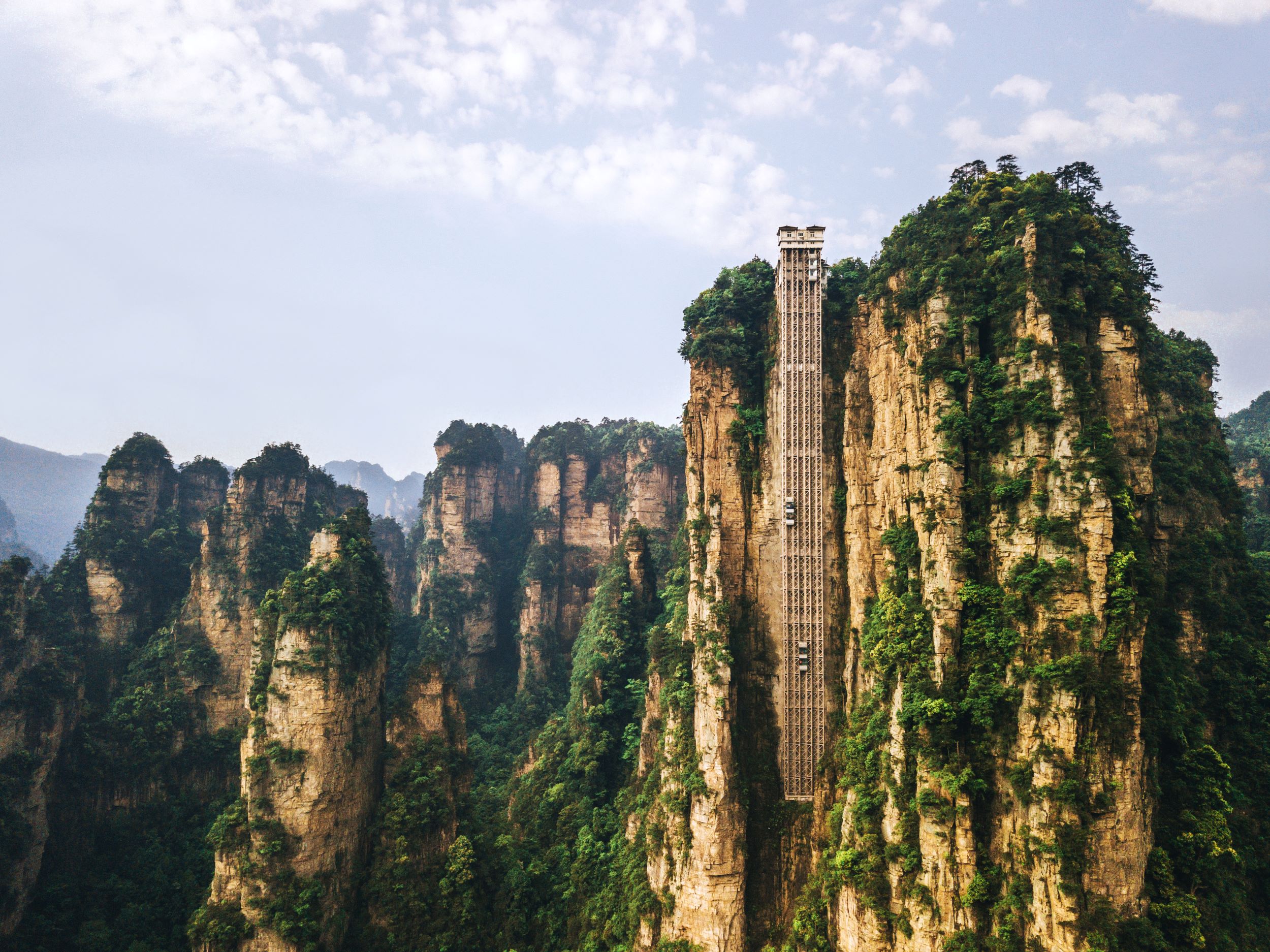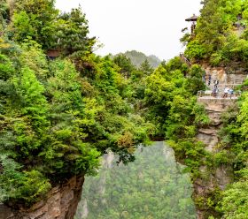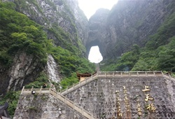 장가계의 산 중에서 역사에 가장 먼저 기록된 명산입니다. 천문산 정상까지 가려면 시내에서부터 이어진 세계 최장 길이의 7.45km 케이블카를 타고 올라가는데, 편도만 35분이 걸립니다. 천문산의 메인 '천문동'은 1,000m 높이의 절벽 위에 있으며, 천문동에서 아래를 내려다보면 999개의 가파른 계단과 99개의 구불구불한 고개가 시원하게 펼쳐져 있습니다.