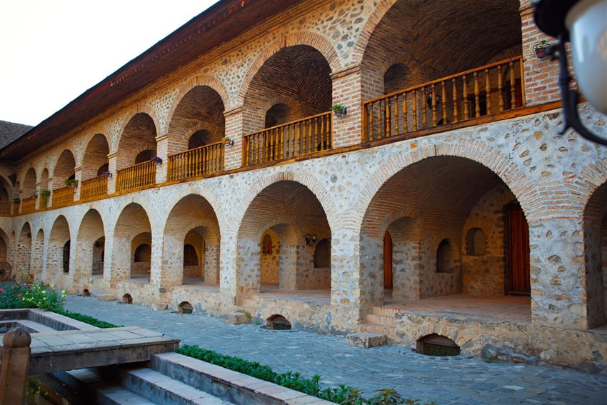 섀키는 동서양을 잇는 실크로드의 주요한 교차로였고, 실크로드 교역을 하던 대상(카라반)들이 머물던 숙소가 카라반 사라입니다.