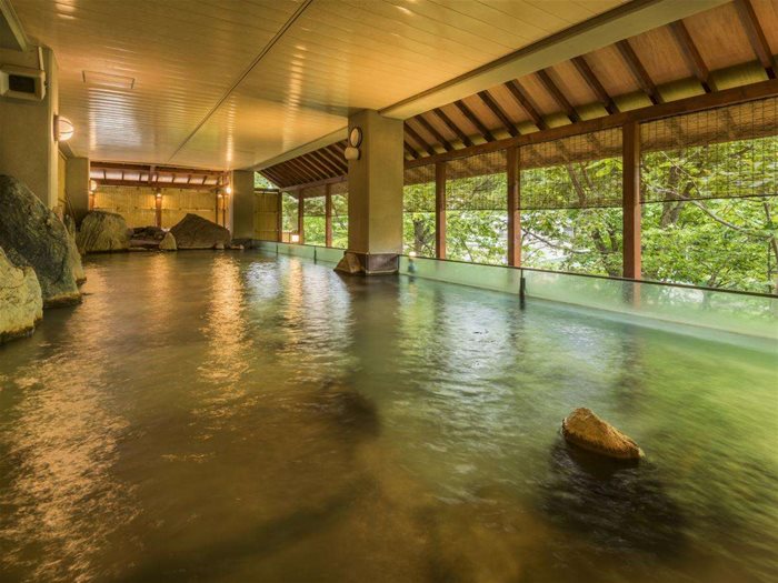 죠잔케이 레이크 라인 옆에 위치해 있는 죠잔케이 뷰 호텔은 객실 수 647개에 2,650명을 수용할 수 있는 대형 호텔입니다. 호텔은 신관과 본관으로 나누어져 있으며 신관에 있는 전망욕장은 지상 60미터에 위치해 있어 일본내에서도 쉽게 찾아 볼 수 없는 높이로 설계된 욕장이며 노천탕이 있어 밤에는 별을 보며 목욕을 즐길 수 있습니다.