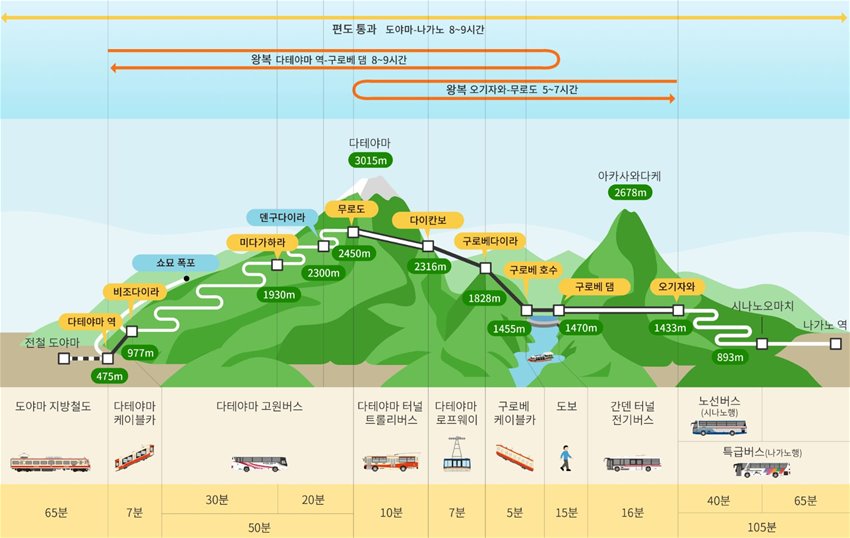 ■ 무로도 : 코스의 중심이 되는 지점으로 다테야마의 절경을 한 눈에 담을 수 있음