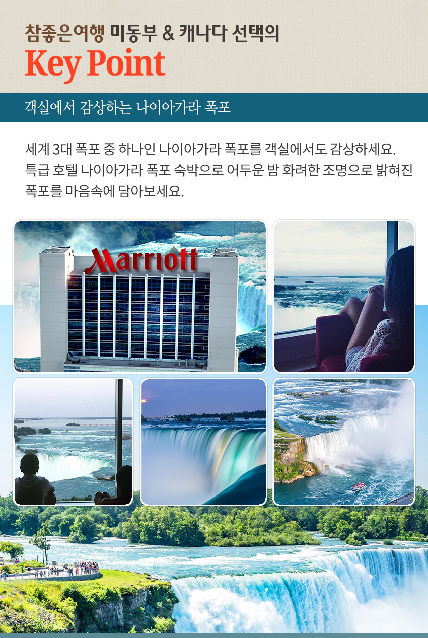 | 13 | 몽모렌시 폭포 + 케이블카 | 나이아가라 폭포보다 더 높은 곳의 또다른 명소 추가관광 (날씨관계로 케이블카 미탑승시 US$30에 진행) | US$40 | 약 1시간 | 폭포 도착 전 주변 쇼핑몰에서 2시간 정도의 자유시간 | 도착 전 주변 쇼핑몰 | 미동행 |