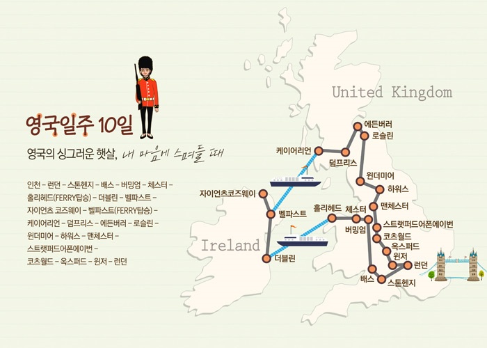 인천-런던(1)-스톤헨지-바스-버밍엄(1)-체스터-홀리헤드-더블린(1)-벨파스트-자이언츠코즈웨이-벨파스트-케이어리언-에어(1)-에딘버러-로슬린-윈더미어-하워스-맨체스터(1)-스트랫포드어폰에이번-코츠월드-옥스포드(1)-윈저-런던-인천