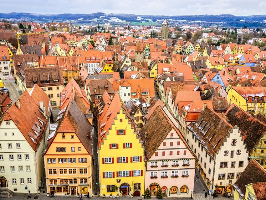 끝도 없이 이어지는 뾰족한 빨간 지붕의 집들과 군데 군데 솟아오른 종탑과 교회. 중세 독일의 모습을 가장 쉽게 만날 수 있는 도시입니다. 독일 바이에른주 북서부에 위치하고 있으며 로만틱가도의 시작점이자 '중세의 보석'이라는 별명이 있을만큼 낭만적인 중세의 아름다움을 간직하고 있는 곳입니다.