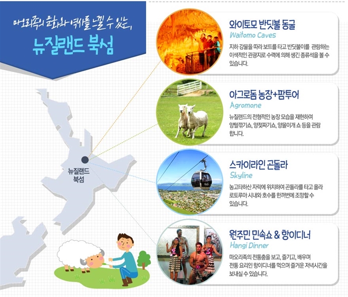 - 뉴질랜드 전통 농장을 재연한 아그로돔 농장에서 양털깍이쇼, 양몰이개쇼+트랙터를 탑승하여 즐기는 팜투어
