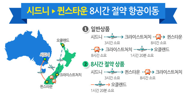 - 오클랜드<->퀸스타운 국내선 항공이동으로 8시간 버스 이동 시간 절약