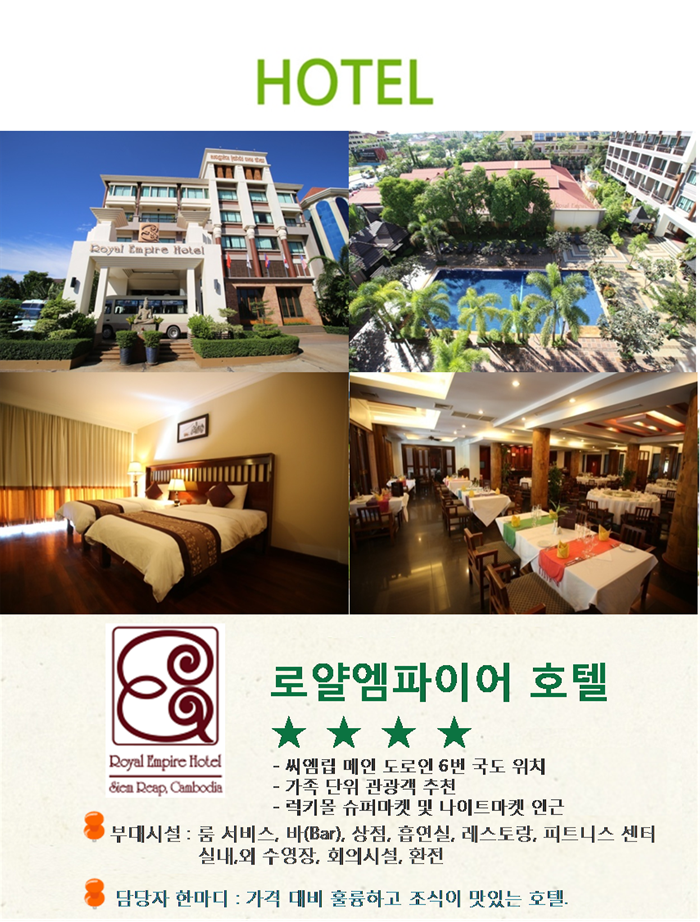 ■ 호 텔 : 로얄 엠파이어 호텔 [Royal empire hotel], 리 호텔 [Ree hotel], 린나야 어반 리버 리조트 [Lynnaya urban river resort]
