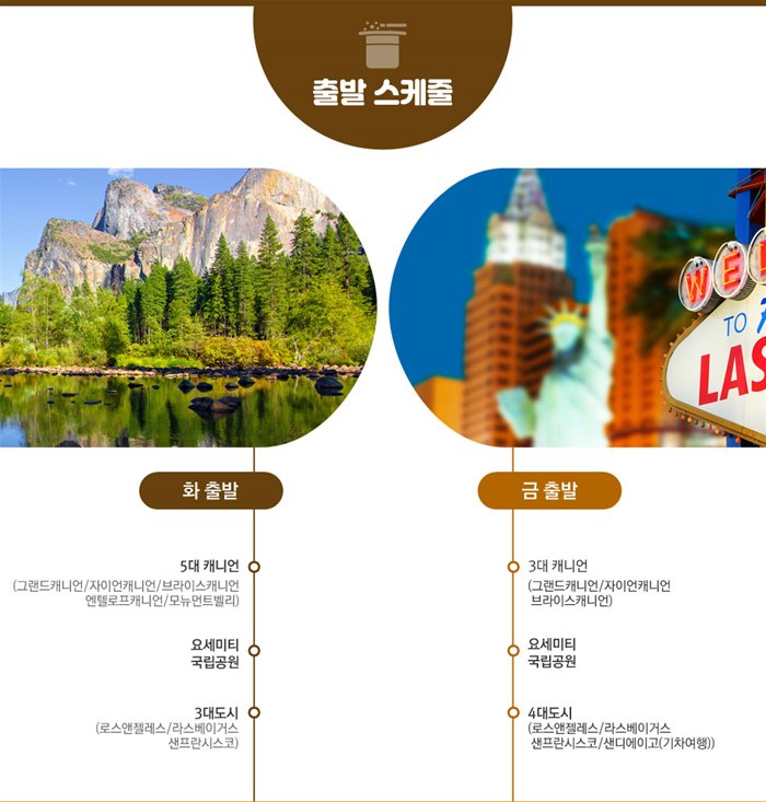 인천-샌프란시스코-요세미티-라스베이거스-브라이스캐니언-자이언캐니언-(앤텔로프/모뉴먼트)-그랜드캐니언(세도나)-로스앤젤레스(기차)-디즈니랜드-인천