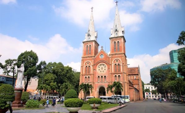 성당 외벽을 꾸몄고, 로마네스크 양식의 이국적인 느낌 덕분에 수많은 호찌민 시민들이