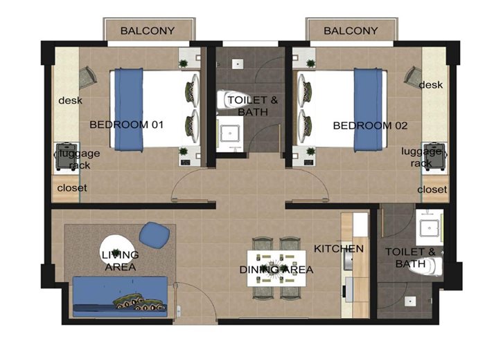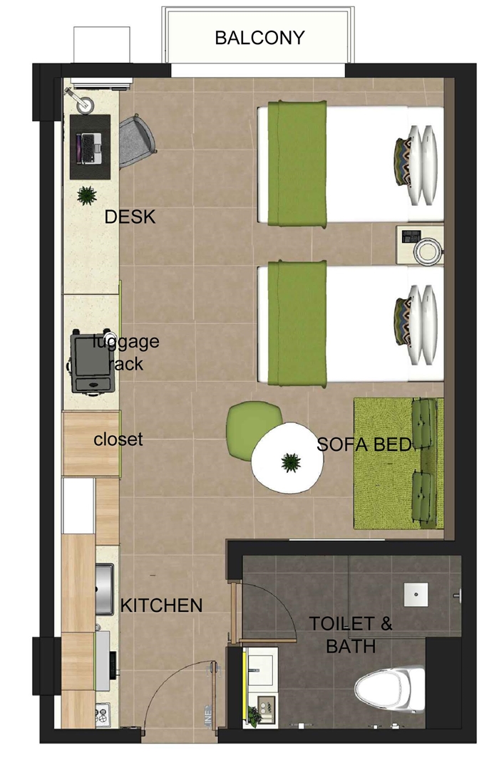 - 2 Double Bed + Sofa Bed (엑스트라 베드 미제공)