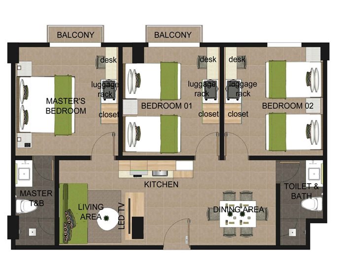 - 2개의 침실 (King Size Bed 2) + Sofa Bed (엑스트라 베드 미제공)