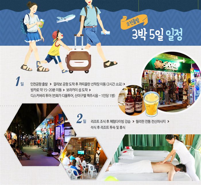 | 8 | 어메이징 | 보라카이밤을 화려하게 밝혀 줄 버라이어티쇼 | $40 | 1시간 | 자유시간 | 비치/리조트 자유시간 | 비동행 |