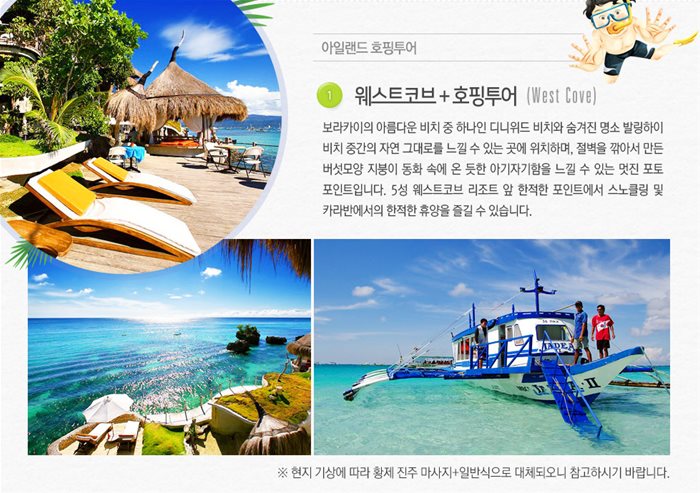 ▶ 보라카이의 현재 날씨는 우리 나라 한여름과 같습니다. 얇은 옷차림, 수영복, 썬크림, 모자등을 준비해 주세요.