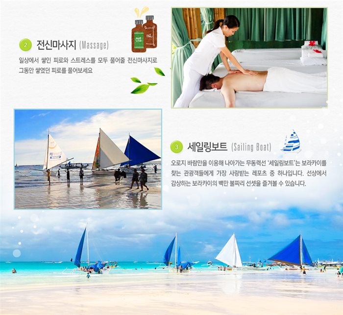 ■ 낮에는 엑티비티와 휴식을, 밤에는 선셋의 아름다움과 여유가 넘치는, 보라카이 해변을 즐겨보세요