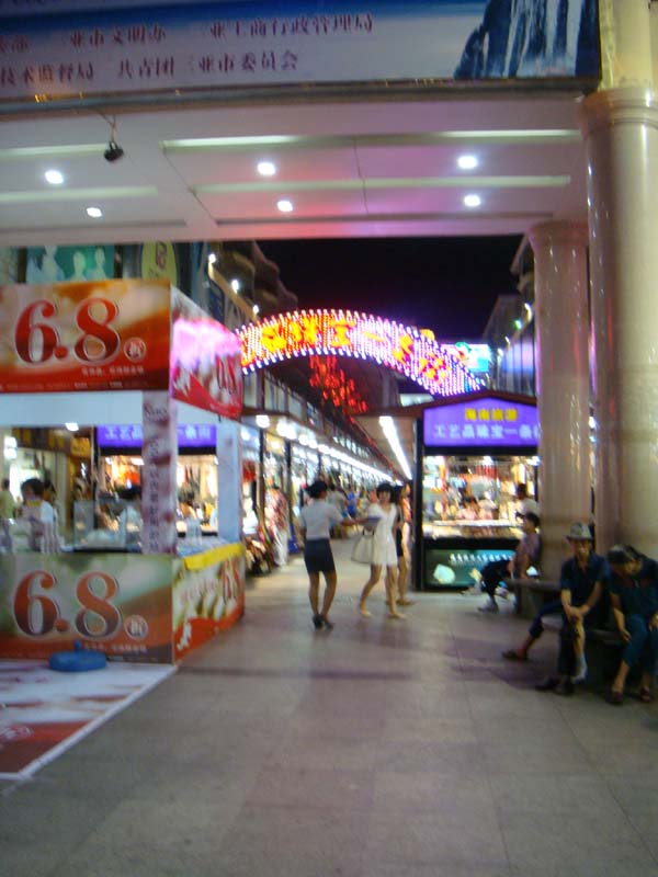 내용보기삼아시의 명동거리입니다 각종 브랜드가 늘어서 있고, 거리 중심에는 노점상이 있습니다. 노점상에는 하이난의 특산품 진주와 야자수로 만든 각종 장식품과 중국풍의 부채, 옥반지등 여러가지 장신구와 물품이 판매됩니다. 중간중간 야자음료와 각종 열대과일 먹을거리도 즐길 수 있습니다.