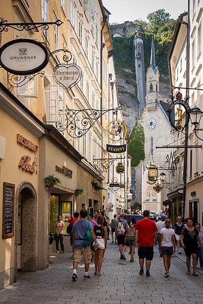 1756년 1월 27일에 음악의 신동 볼프강 아마데우스 모차르트가 태어난 집으로 잘츠부르크에서 가장 번화한 게트라이데 거리 9번지에 있습니다. 모차르트는 12세기 무렵 지어진 이 건물 3층에서 태어나 17세이던 1773년까지 살았습니다. 잘츠부르크에서 가장 유명한 명소로 1층에는 모차르트가 사용했던 침대, 피아노, 바이올린, 자필악보, 서신 등이 있고, 2층에는 유명한 오페라 <마술피리>를 초연할 당시 사용했던 것과 같은 소품들이 전시되어 있습니다. 3층 4층에서는 모차르트의 가족들과 잘츠부르크에서 생활하던 당시의 모습을 각각 소개하고 있습니다. 이 곳의 전시품들을 통해 당시 중산층의 전형적인 생활 모습을 엿볼 수 있습니다.