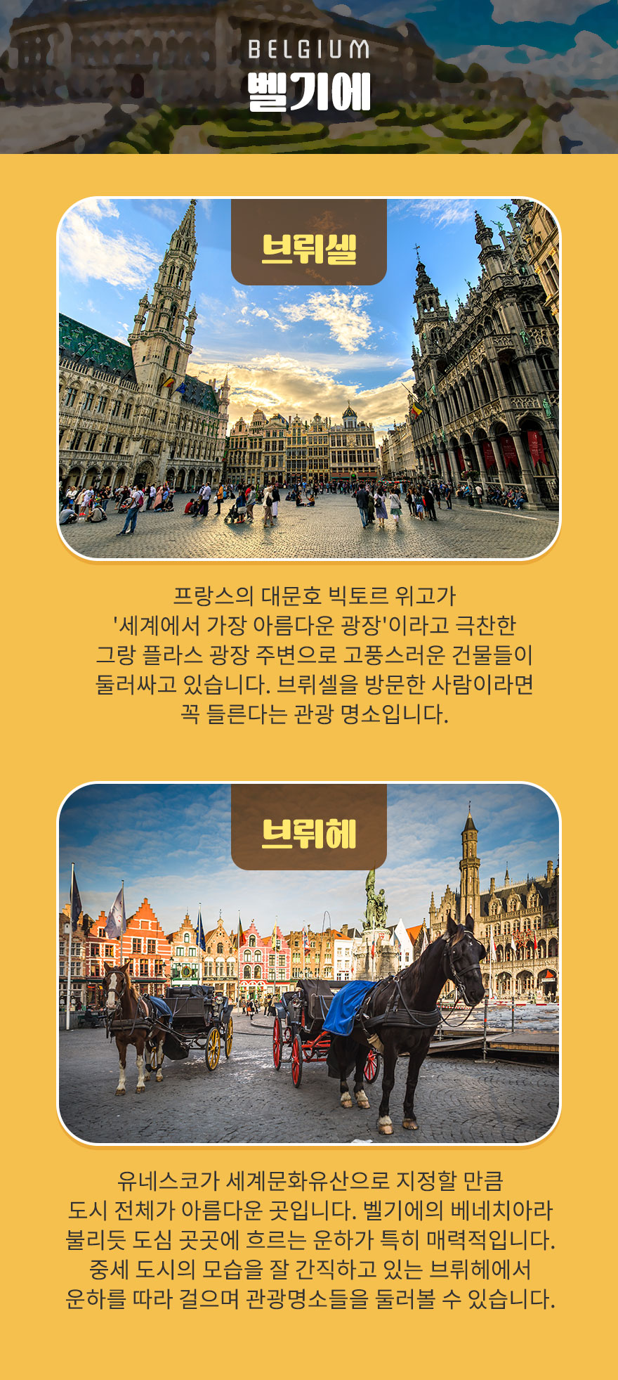 | 2 | 브뤼헤 마차투어 | 마차를 타고 아름다운 운하도시인 브뤼헤를 즐길 수 있습니다. | 30유로 | 약30분 | 주변에서 자유시간 | 브뤼헤 시내 | 미동행 |