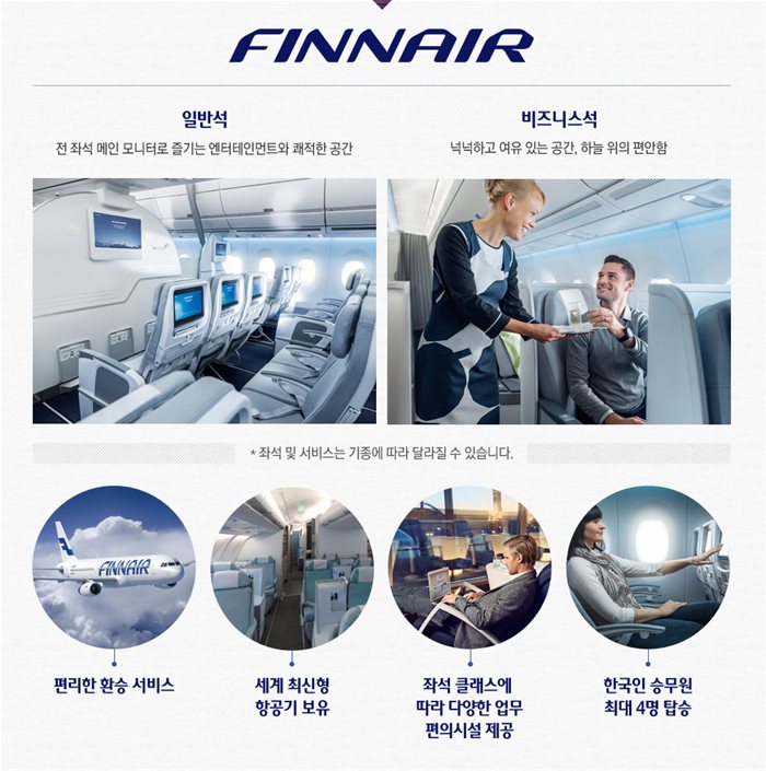 ※ 핀란드 항공 유럽내 구간에서는 기내식이 유료로 판매되고 있는 점 양해 부탁드립니다.