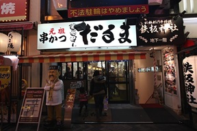 ▶ 오사카의 명물 꼬치요리인 쿠시카쯔 집이 모여 있는 신세카이(新世界)