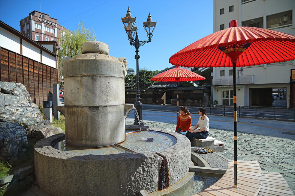 도고 온천 역 인근, 봇짱 시계 바로 옆에 아시유/테유(족탕,수탕)가 있습니다. 무료이며 누구나 온천 가마가 놓인 둘레에 발을 담그면서 여독을 풀 수 있습니다.