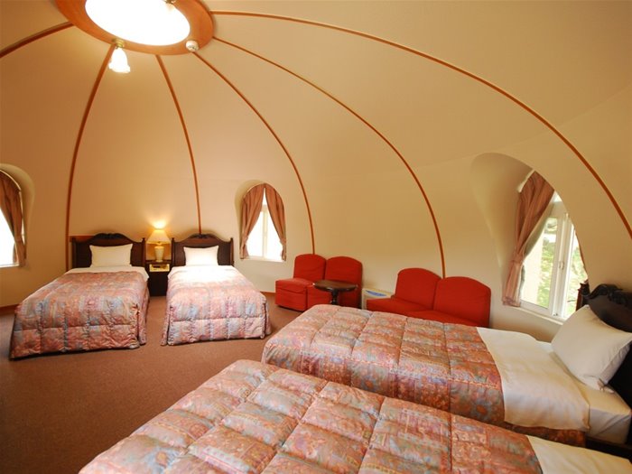 숙박형태는 기존의 호텔 리조트의 모형이 아닌 아소산의 자연환경을 최대한 배려하여 만든 돔형객실로 북극의 이글루 같은 형태로 어른과 아이과 같이 동심의 세계에서 자연과 일체되어 여유를 만끽할 수 있는 휴양지로 일본에서도 각광받는 리조트 중에 하나로 꼽히고 있습니다.