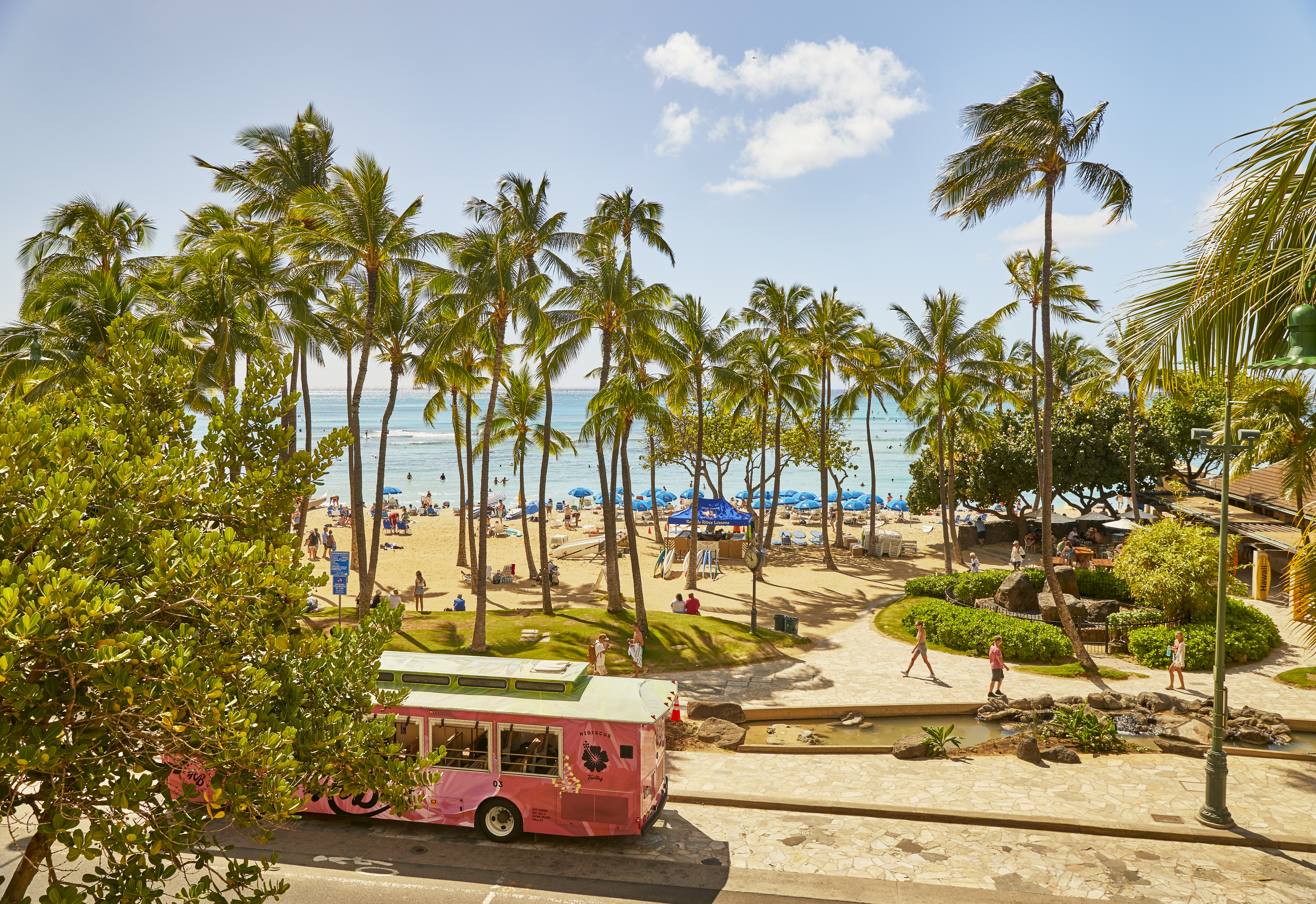 - 알라모아나 쇼핑센터까지 편하게 와이키키 트롤리 핑크라인 1일권 제공