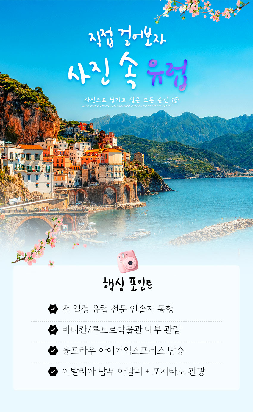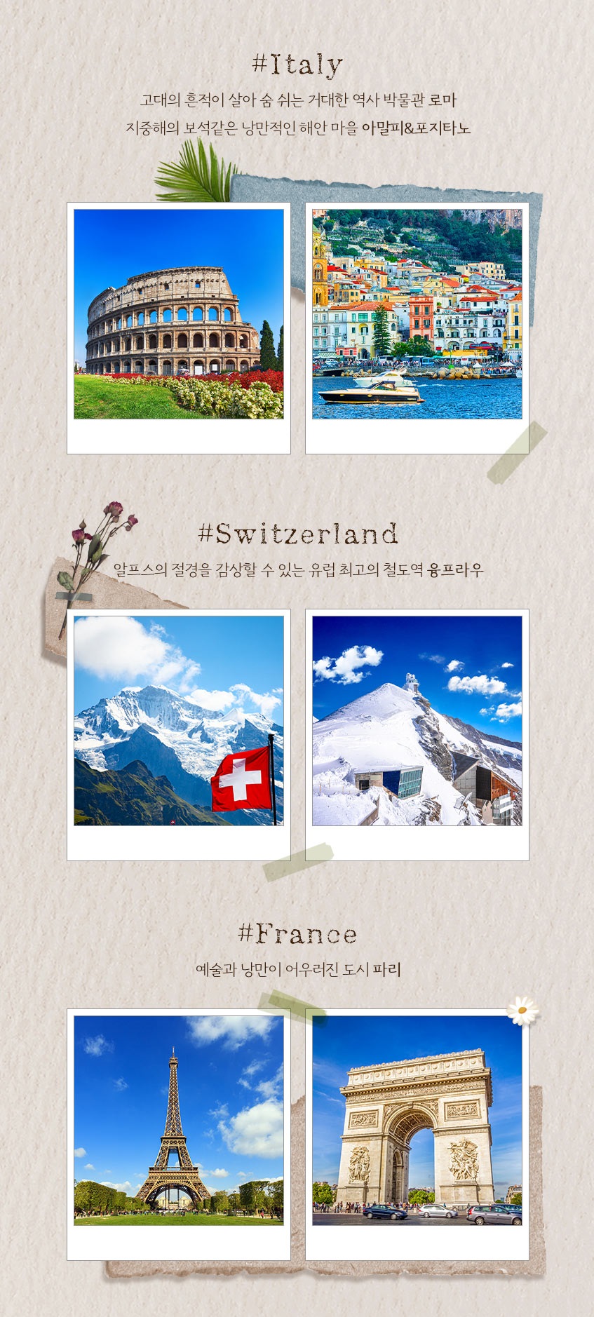 인천-기내박(1)-두바이-파리(1)-벨포르-인터라켄(1)-밀라노(1)-베니스(1)-피렌체-로마(1)-포시타노-아말피-로마(2)-기내박(1)-두바이-인천