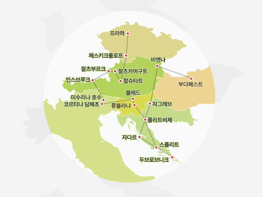 인천-부다페스트(1)-비엔나(1)-자그레브(1)-플리트비체-스플리트(1)-두브로브니크-네움(1)-스플리트-자다르-플리트비체(1)-류블라냐-블레드-리엔츠(1)-코르티나 담페초-인스브루크(1)-잘츠부르크(1)-잘츠카머구트-할슈타트-린츠(1)-체스키크룸로프-프라하(1)-기내(1)-인천