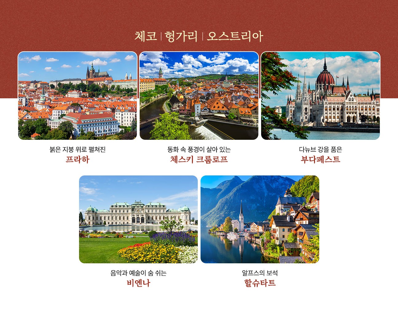 1. 왕복항공요금 및 제세공과금 (아시아나 항공 마일리지 약 80% 적립 가능) 2. 유류할증료 (매 월 마지막 화요일 기준) 3. 투어리스트 급 또는 일급 호텔 숙박 (2인 1실 기준) 4. 전 일정 '전문 인솔자' 동행 (수신기 대여) 5. 일정상 표기된 식사 및 관광지 입장료 - 7대 맛체험 부다페스트(헝가리) : 굴라쉬 프라하(체코) : 스비치코바 체스키크룸로프 (체코) : 꼴레뇨 비엔나(오스트리아) : 호이리게 잘츠카머구트(오스트리아) : 슈니첼 플리트비체(크로아티아) : 송어구이 두브로브니크(크로아티아) : 해산물 스파게티 6. 최고 1억원 해외여행자 보험 ※ 하단 참고사항 내 여행자 보험 설명 참조 |