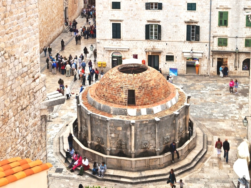 두브로브닉의 구시가지 입구에 위치한 오노프리오 분수는 1448년 오노프리오 데 라 카바(Onofrio de la Cava)에 의해 설립되었습니다. 분수의 중앙은 크고 둥근 형태의 지붕이 있으며 그 아래를 그 아래는 16각형으로 석조물이 받치고 있습니다. 분수의 물은 약 20km 떨어진 리예카 두브로바츠카(Rijeka Dubrovacka)에 있는 우물에서 물을 끌어와 공급하는 형태로 당시에는 획기적이고 혁신적인 기술력을 선보인 수로의 개발로 많은 관심을 받았으나 현재는 관광 명소로서 각광받는 곳입니다.